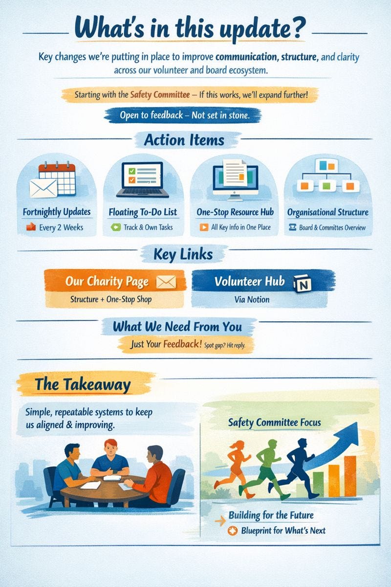 Key changes we’re putting in place to improve communication, structure, and clarity across our volunteer and board ecosystem.